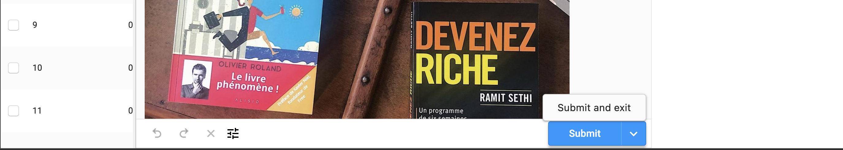 When annotators are not finished with their annotation work but would like to exit their labeling flow to, for example, pause the lead time calculation on their annotations, they can click the drop-down menu next to Submit and then select Submit and Exit (or Update and Exit). This will submit the current annotation and redirect them to the Projects page.