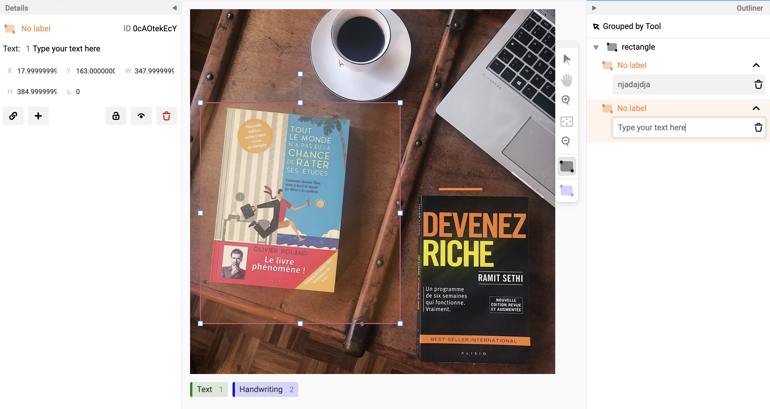 You can edit regions with a focus on labeling. You can zoom in and precise control over the numbers and dimensions of each region attribute. The image region details like height, rotation, and so on can be changed using the inputs in the Details panel. Now, you can collapse all panels and get the maximum working area. This feature design makes some actions clear in the product user interface.